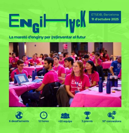 | | Torna l'Engihack a l'ETSEIB |  En aquesta hackató, organitzada per l'Escola Tècnica Superior d'Enginyeria Industrial de Barcelona (ETSEIB), l' 11 d'octubre i durant 12 hores es proposaran 6 reptes reals d'empreses capdavanteres. Serà un espai per fer networking, entrar en contacte amb el món professional i gaudir de noves oportunitats. |